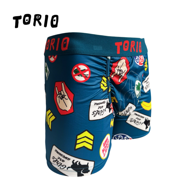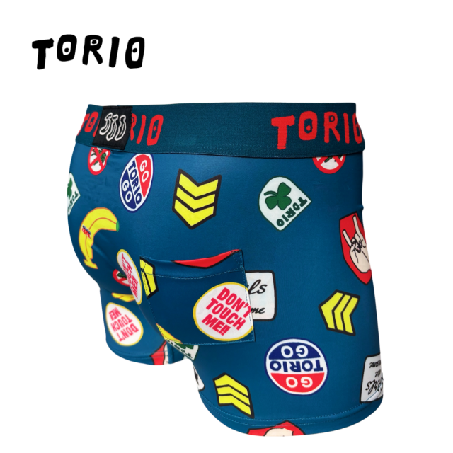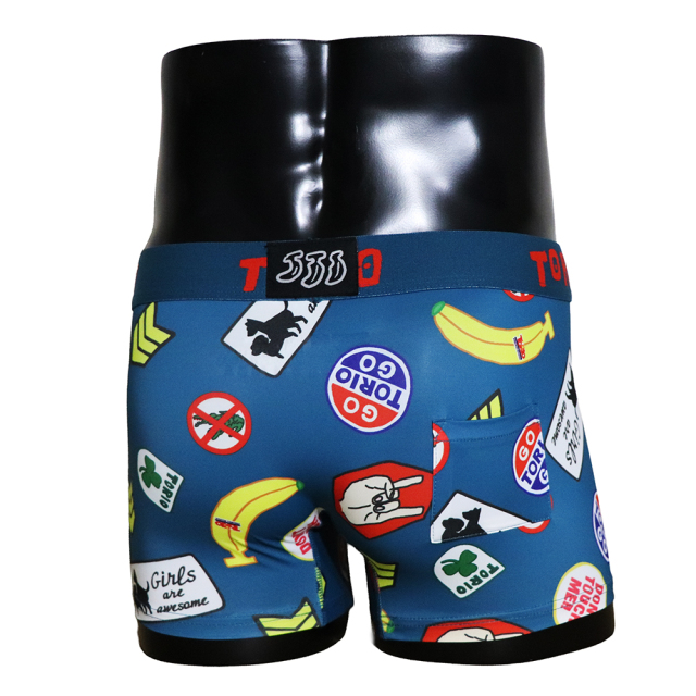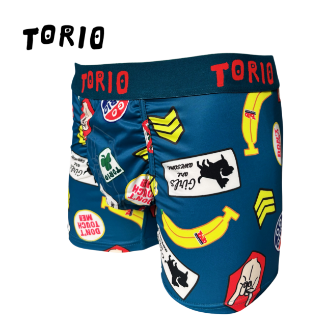 【ツルツルした素材です!】 内側はポケット状になっており、開放的で履き心地抜群! [材質:ポリエステル-95% ポリウレタン-5%] TORIO(トリオ)は大阪発のアンダーウェアブランドです。ちょっぴりエッチでポップなアンダーウェアをコンセプトにカワイイ・オシャレなデザインが満載です。大阪らしいギャグ・下ネタを交えながらパンツで笑いを提供してくれます。蓄光で電気を消すと光るパンツや、パロディ商品など、大人の遊び心を楽しめる商品です。