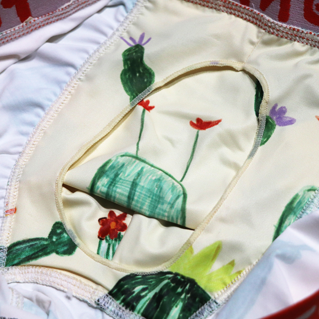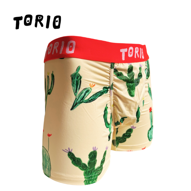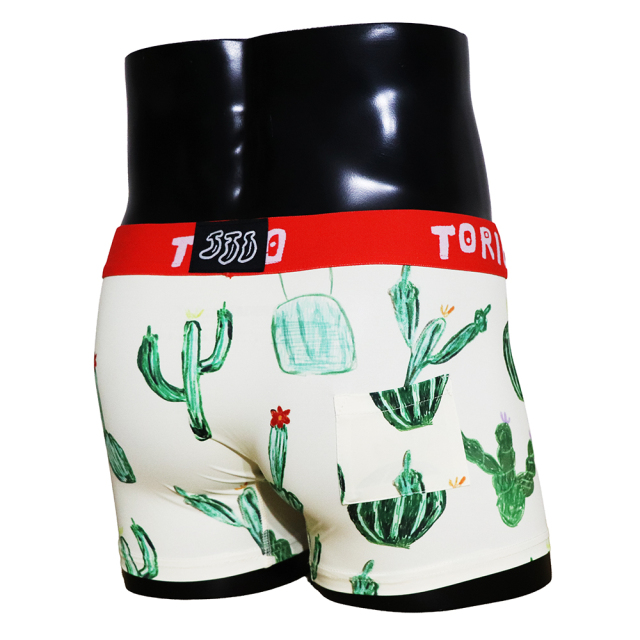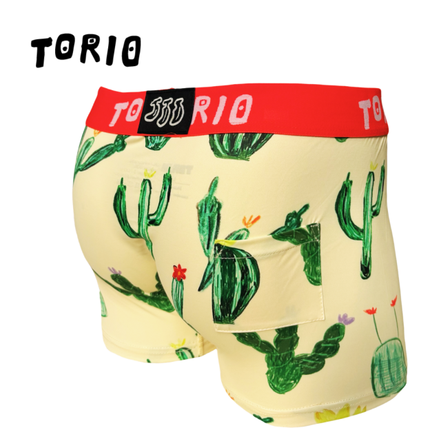 【ツルツルした素材です!】 内側はポケット状になっており、開放的で履き心地抜群! [材質:ポリエステル-95% ポリウレタン-5%] TORIO(トリオ)は大阪発のアンダーウェアブランドです。ちょっぴりエッチでポップなアンダーウェアをコンセプトにカワイイ・オシャレなデザインが満載です。大阪らしいギャグ・下ネタを交えながらパンツで笑いを提供してくれます。蓄光で電気を消すと光るパンツや、パロディ商品など、大人の遊び心を楽しめる商品です。