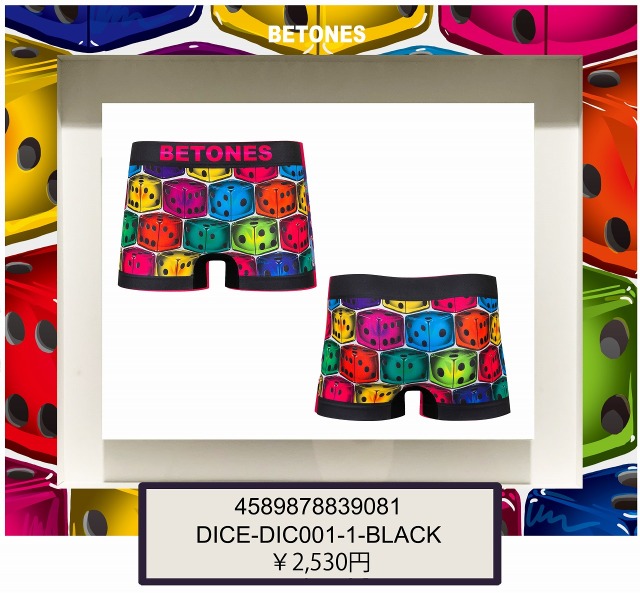 ★★★「DICE」★★★ ■価格¥2,530円(税込) ※推奨サイズ:29inch-34inch / 74cm-86cm 素材/ポリエステル65% ナイロン25% ポリウレタン10% BETONESは、最新技術によりあらゆる体型にフィットする抜群の伸縮性が実現したフリーサイズとソフトな肌触りに加え、吸汗速乾機能の糸を仕様した機能素材と耐久性により、日常着としてだけではなく、スポーツや多様なシーンにも対応可能な新感覚アンダーウェアです。