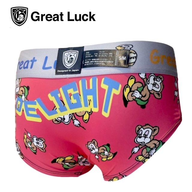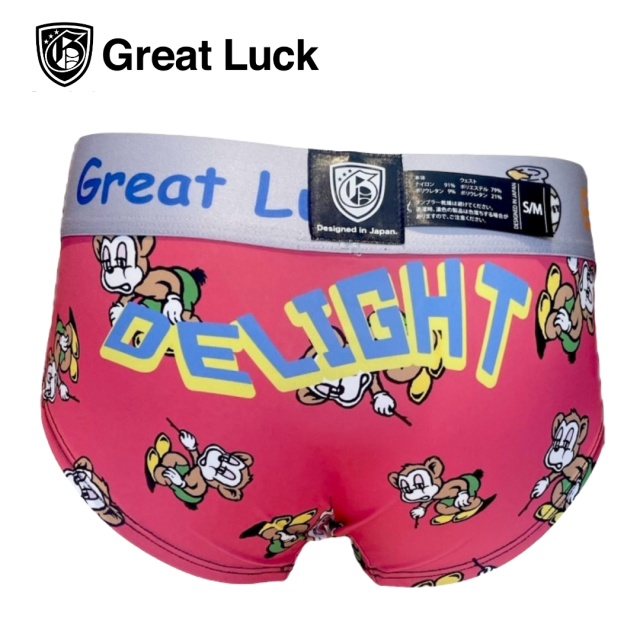 ディラクマ(PINK) Great LuckとDELIGHTくま(ディラクマ)コラボです。縁起の良い贈り物としてもおすすめです。 「デザイン説明」 北海道のお土産としても有名な『木彫りの熊』ですが、「熊みたいに大きくなれ」「大物になれ」と子供の成長に縁起の良いものと考えられ伝えられてきました。 そこから転じて「試練に打ち勝つ」「試験に合格する」と言われ、縁起をかついで受験のお守りにしたり「魔除け」「災難除け」とされました。招きクマの手(熊手)には「福を招く」「福をかき集める」と言われるようになりました。ディラクマを履いて幸運が訪れますように。 Great Luckのブランド語源は、めちゃくちゃ幸運!大吉という意味!! 穿く方の幸運を願った1枚です。 メンズペア商品有ります!! ペアでお楽しみ頂けます☆★☆ サイズ S/Mウェスト61~75cm M/Lウェスト73~87cm [材質:ナイロン-91% ポリウレタン-9%]