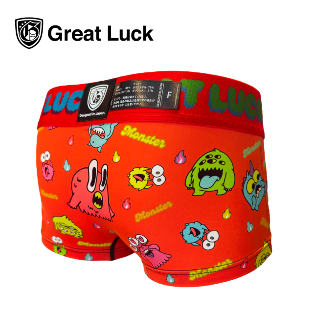『Monster』 Great Luckのブランド語源は、めちゃくちゃ幸運!大吉という意味!! 穿く方の幸運を願った1枚です。 生地 ナイロン-85% ポリウレタン- 15% ウェストゴム ポリエステル-79% ポリウレタン-21%