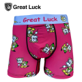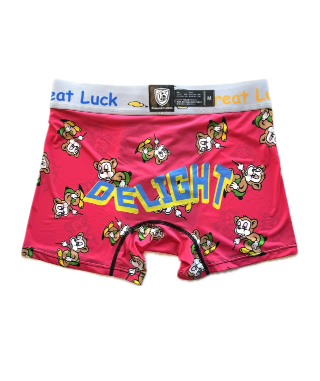 『ディラクマ(PINK)』 Great LuckとDELIGHTくま(ディラクマ)コラボです。縁起の良い贈り物としてもおすすめです。 「デザイン説明」 北海道のお土産としても有名な『木彫りの熊』ですが、「熊みたいに大きくなれ」「大物になれ」と子供の成長に縁起の良いものと考えられ伝えられてきました。 そこから転じて「試練に打ち勝つ」「試験に合格する」と言われ、縁起をかついで受験のお守りにしたり「魔除け」「災難除け」とされました。招きクマの手(熊手)には「福を招く」「福をかき集める」と言われるようになりました。ディラクマを履いて幸運が訪れますように。 Great Luckのブランド語源は、めちゃくちゃ幸運!大吉という意味!! 穿く方の幸運を願った1枚です。 ブランド名「Great Luck」Great Luck=幸運パンツ 「商品の特徴」 ボクサーパンツのフロント内部に立体スペースがあり、ムレにくい、ブレにくい ポジションが気になりにくい事が特徴です。 生地がサラッとだから乾きも早い。 インクジェットプリント色落ちしづらく長持ちする。 快適で、履きやすく、長持ちと三拍子が揃ったボクサーパンツです。 生地 ナイロン-85% ポリウレタン- 15% ウェストゴム ポリエステル-79% ポリウレタン-21%